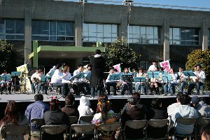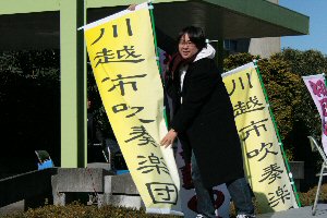 | ●2007年11月23日(金) 「川越少年刑務所」の「矯正展」にて演奏ステージがありました。 風が強く寒い中、たくさんの拍手ありがとうございました。 演奏は市立川越高校吹奏楽部のみなさんと合同で行いました。楽しかったですね。 |