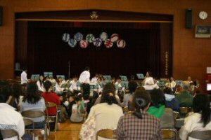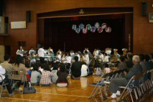 | ●2007年11月17日(土)川越市内の「市立高階北小学校」にてPTA主催イベントの一環で演奏ステージがありました。 演奏後の「おしるこ」もとても美味しく頂きました。子供達の笑顔とPTAの方々のご協力に深く感謝いたします。 |