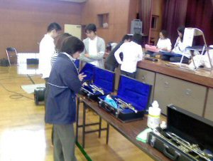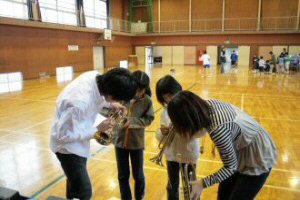 | ●2007年11月10日(土) 「川島町立小見野小学校」にてPTA開催の「小見野ふれあいまつり」に参加いたしました。 当団演奏ステージで楽しんで頂いた後は、「楽器にふれあおうのコーナー」でも楽しんでいただきました。 |